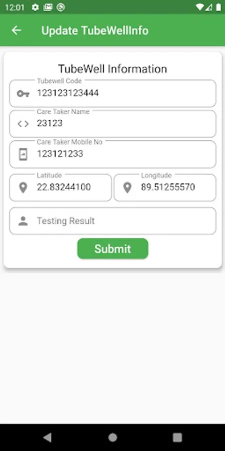Collect Arsenic value of tube well water and send it to server. The full life cycle will go through this app.