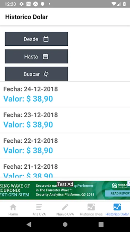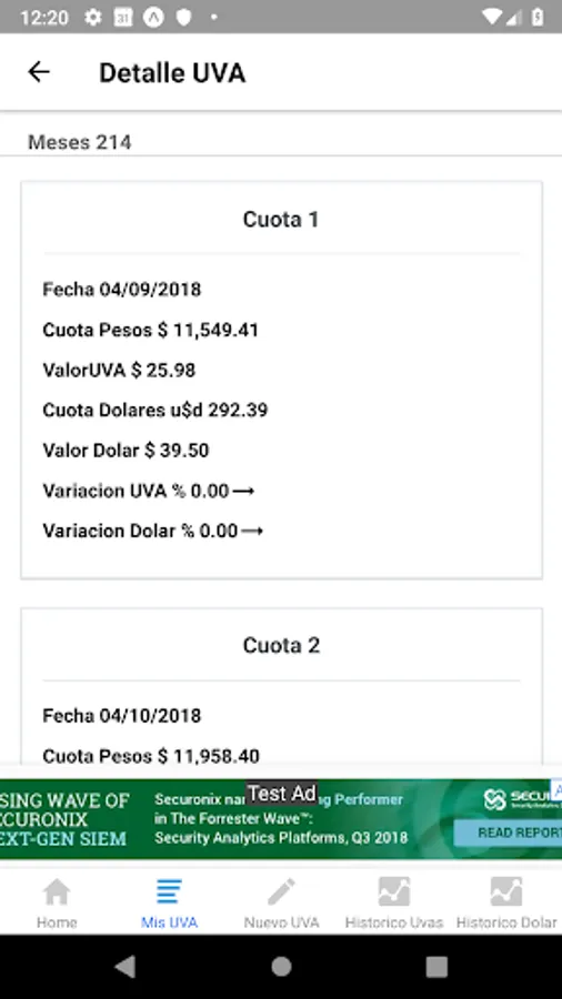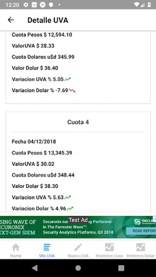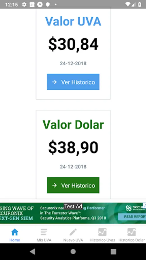 It shows the value of the UVA and Dolar of the day, and you can consult the historical ones.