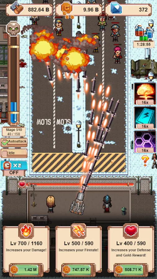 Idle Zombie Shelter is an idle game where you fight against waves of zombies to get gold and resources. Use resources to build and upgrade your own shelter. The bigger your shelter becomes, the more survivors will come and give you useful items and resources. Use all your collected resources and upgrade your weapons, hire new soldiers and get to the top in the multiplayer rankings.