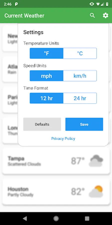 - Celsius or Fahrenheit, mph of km/h, 12hr or 24hr format