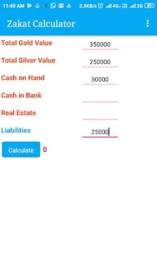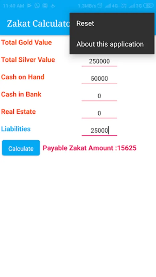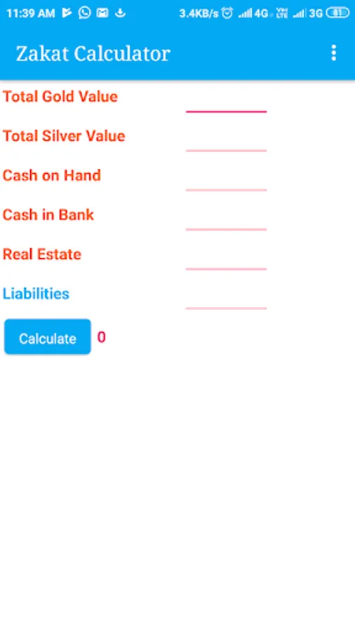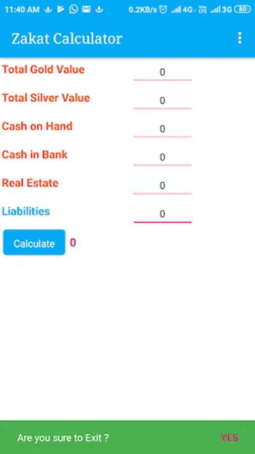 Zakat Calculator is a simple app to calculate your zakat, it calculates zakat for your Gold, Silver, Real State, Other profits and deduct the liability value from your zakat value and