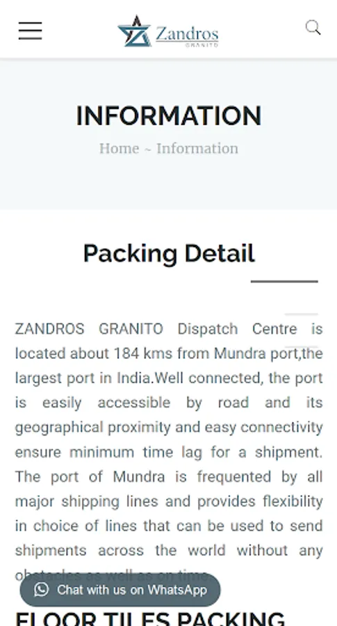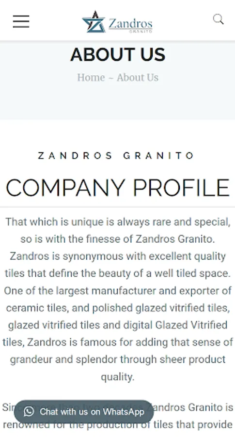 Since more than two decades Zandros Granito is renowned for the production of tiles that provide finesse, style and quality. Our supreme quality is a result of leading edge 21st century production process that includes high end machinery, quality control process, research and development as well as automation.
