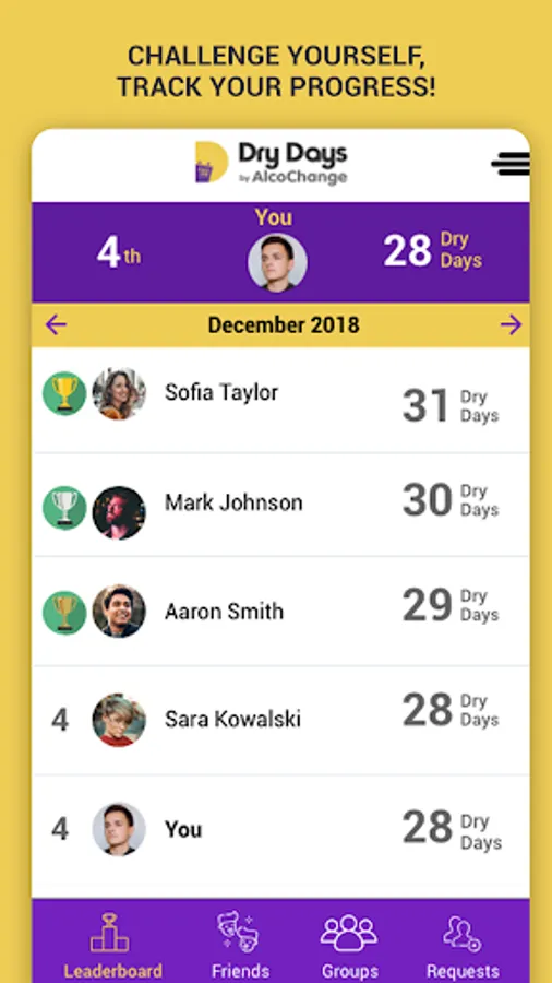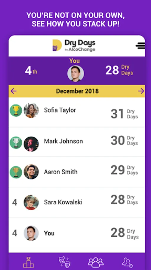 Invite your friends to Dry Days, you can also join our Facebook support group from the app.