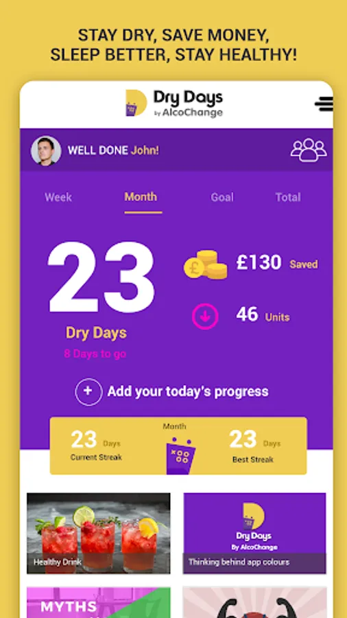 Each of us are different in this journey and the app is non-judgemental and is carefully designed by experts and continuous feedback from Dry Days users to help people with different goals through a variety of features.