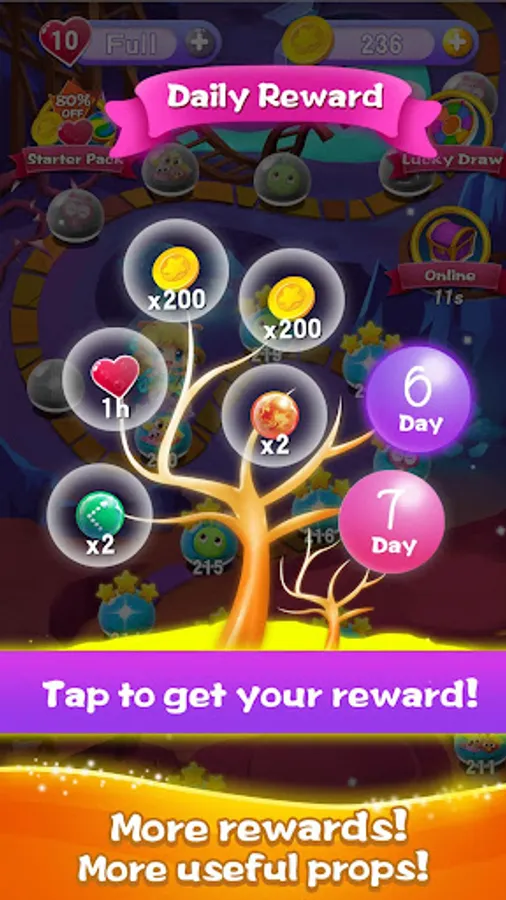 Bubble shooting fun comes with a relaxing atmosphere and mysterious magic world in Bubble Pop 2. match 3 or more bubble to clear all the bubbles on the screen.try your best to get 3 stars on every level .Shoot bubbles to pop and drop your way to pass levels!