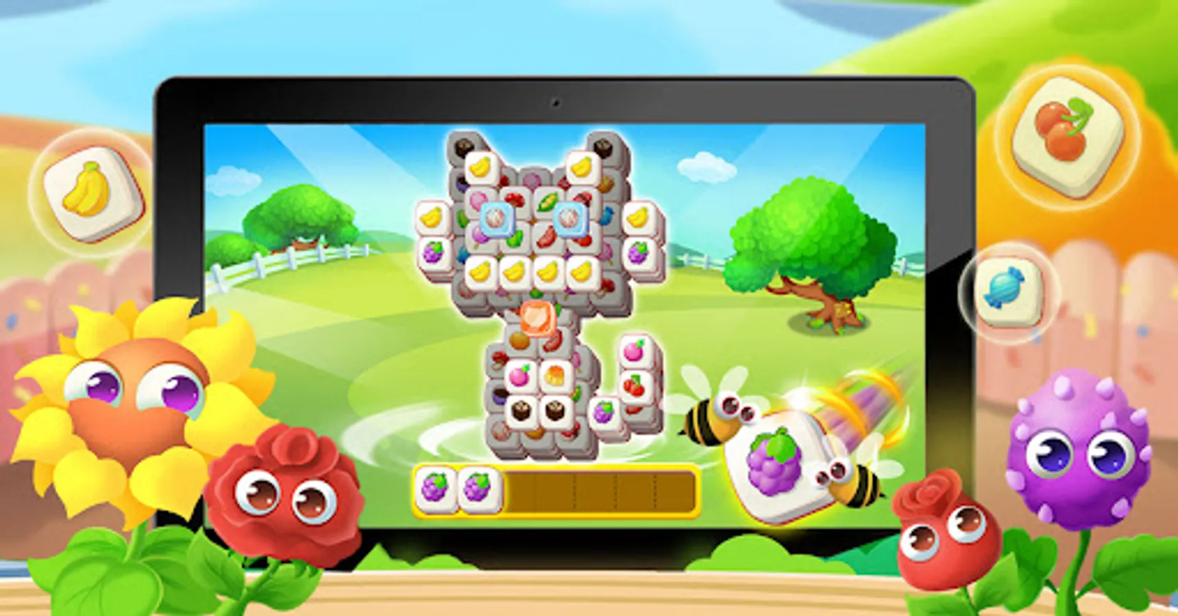 - Tap to move tiles on the puzzle map into the display zone. The set of 3 identical tiles will be eliminated.