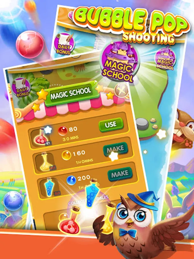 Match 3 or more bubble to clear all the bubbles on the screen.try your best to get 3 stars on every level