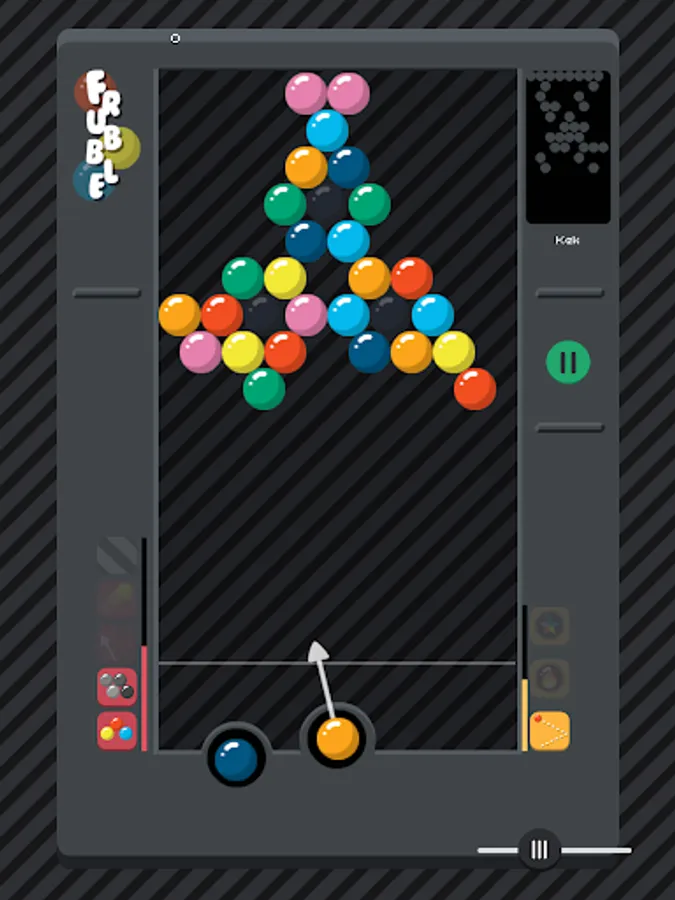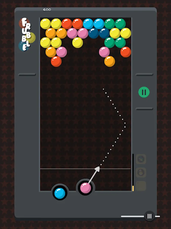 Based on the well-known bubble game, Frubble allows you to pull your opponent's leg : turn the game in black and white, slow down his shots, switch commands... and many more dirty tricks.
