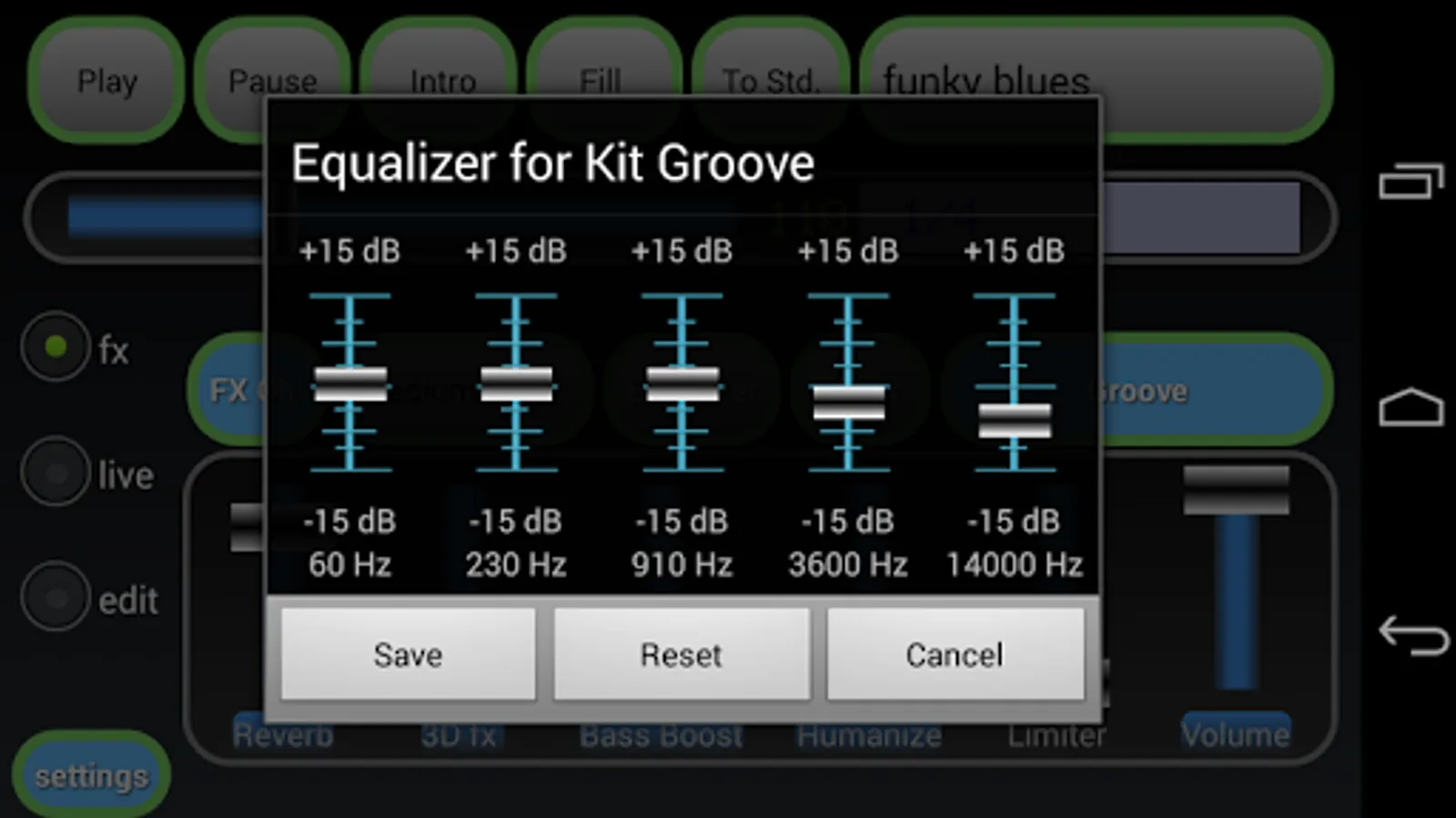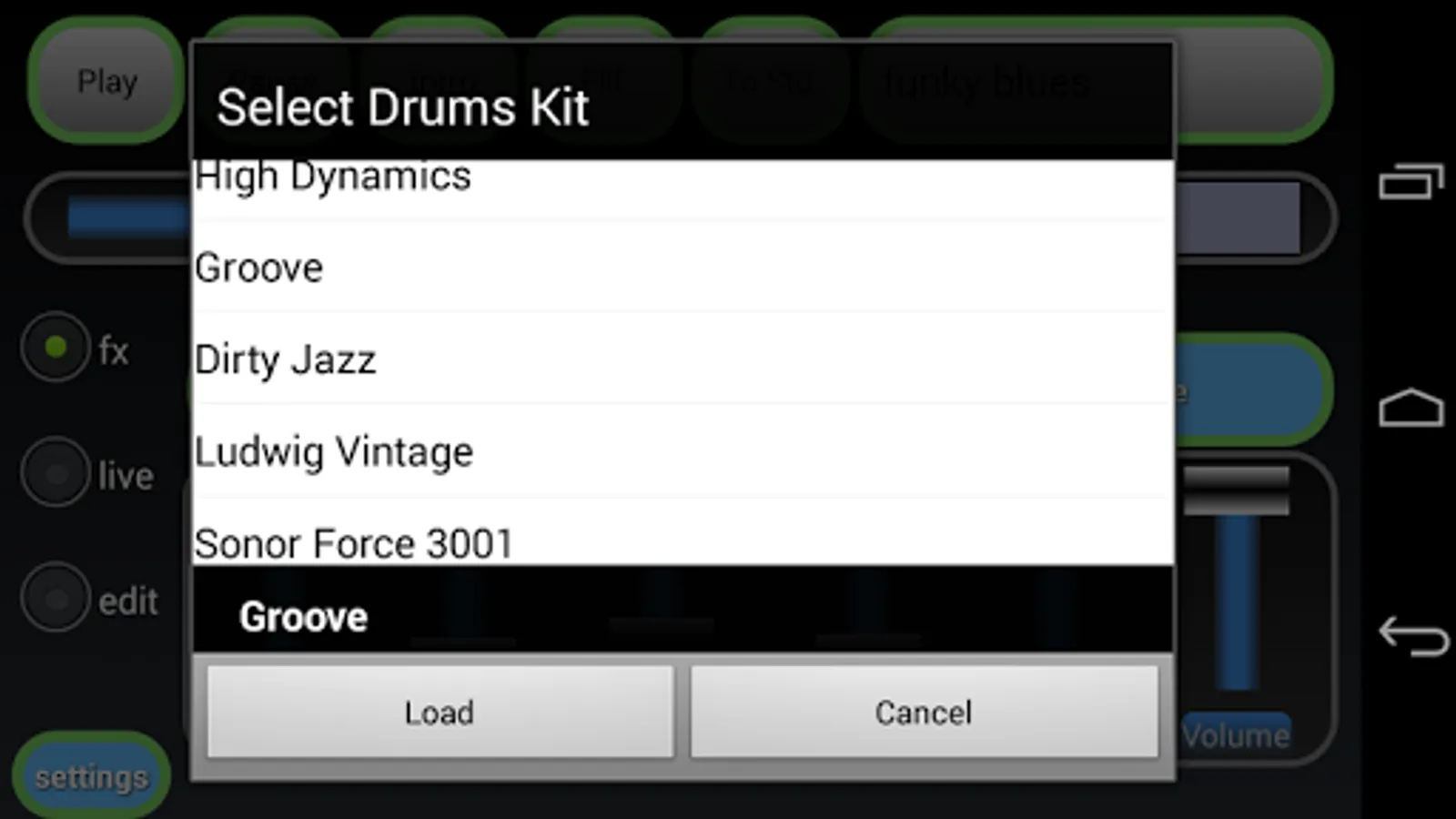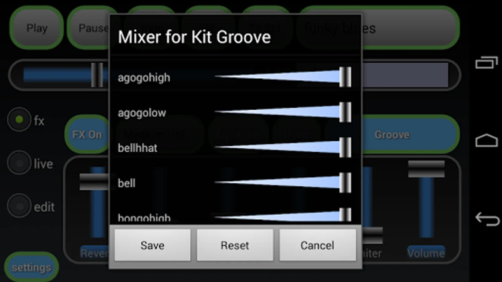 Editor: to modify an existing rhythm select it from main app and simply touch the edit checkbox, then the rhythm editor will be started and show four tracks of events view with some controls in the upper part of screen.