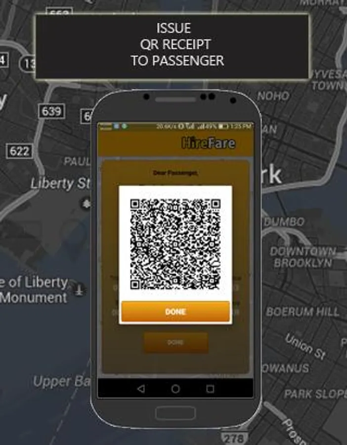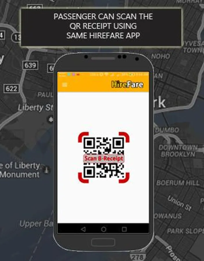 HireFare is cable of issuing QR receipt to passengers. By using the same app, passengers can scan and store them in their smart device.