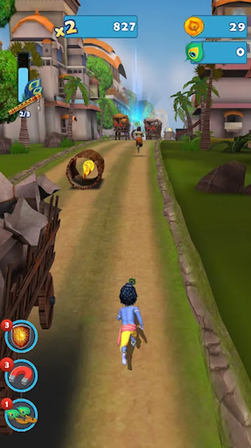 While you’re upto the usual Makhan Masti antics and pranks, learn to protect Vrindavan and its people from Putana with the help of magical power-ups. Brawl with her in the Caves and teach her a lesson in challenging BOSS FIGHTS.