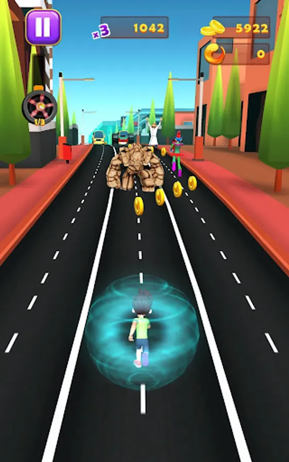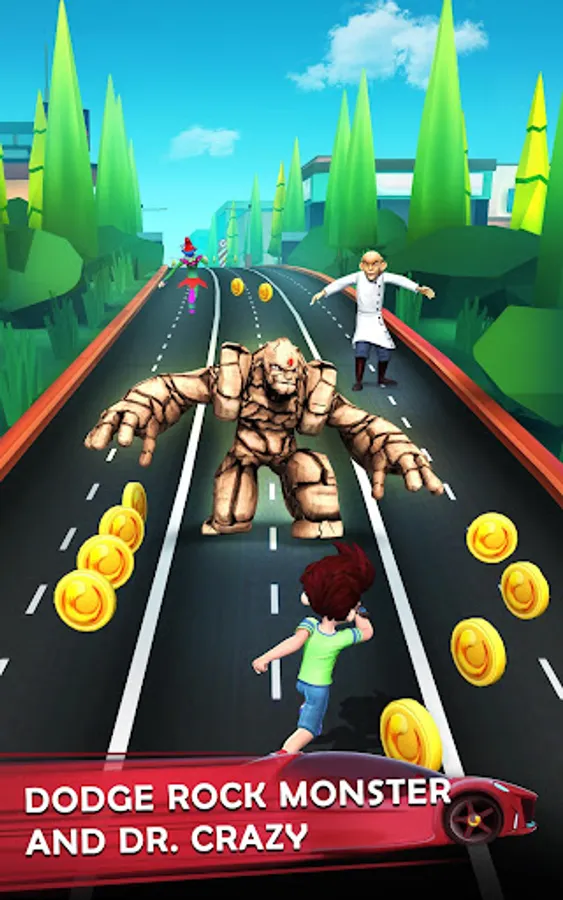 Run on the streets of Sun City and collect as many coins you can. Slide through concrete pipes. Jump over incoming cars and barricades. Tackle through Magnet Man and Dr. Crazy to stay out of their reach and get back on your quest to capture Joker. Grab Magnets on the run to collect all the nearby coins. Seize all the Shields on your way and run through obstacles. Use Power Boots to boost up your speed and help Kicko narrow down the distance between him and Joker.