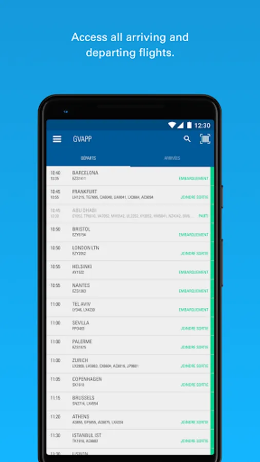 Carry the airport in your back pocket! More functions have been added to the newest version of GVApp: scan your boarding pass to track your flight and activate the personal travel assistant, share a flight and choose a notification ringtone, update the interactive map – all for free!