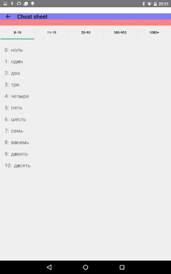 The app also includes a cheat sheet to relearn quickly. Just touch the number to ear them.