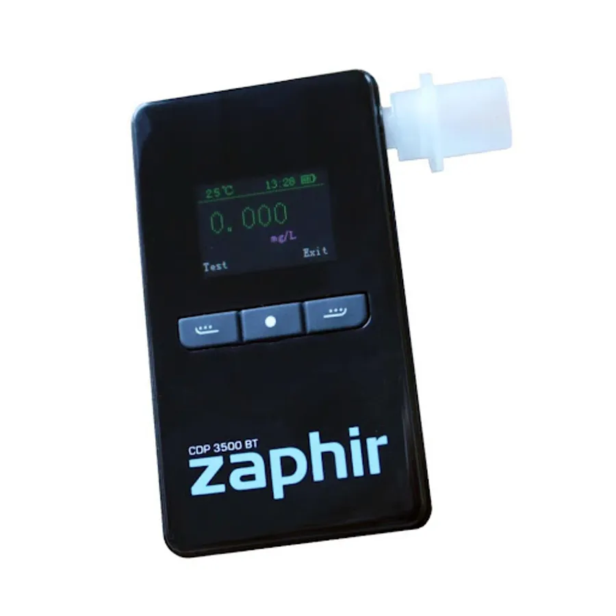 The Zaphir CDP 3500 breathalyzer is the most technologically advanced device of its kind. It includes a platinum electrochemical sensor and allows a connection to a Smartphone via Bluetooth.