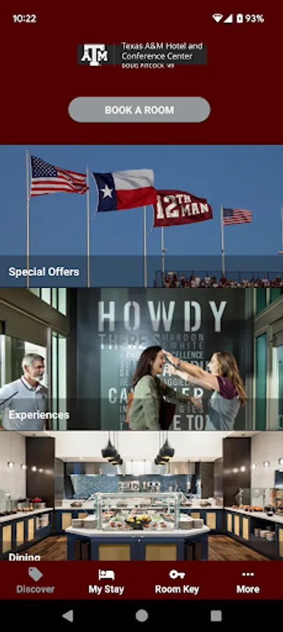 Howdy! We provide you with an easy way to view your booking, manage your check-in and access your hotel mobile key through your device. We look forward to welcoming you to the heart of Aggieland. Thanks and Gig 'em!
