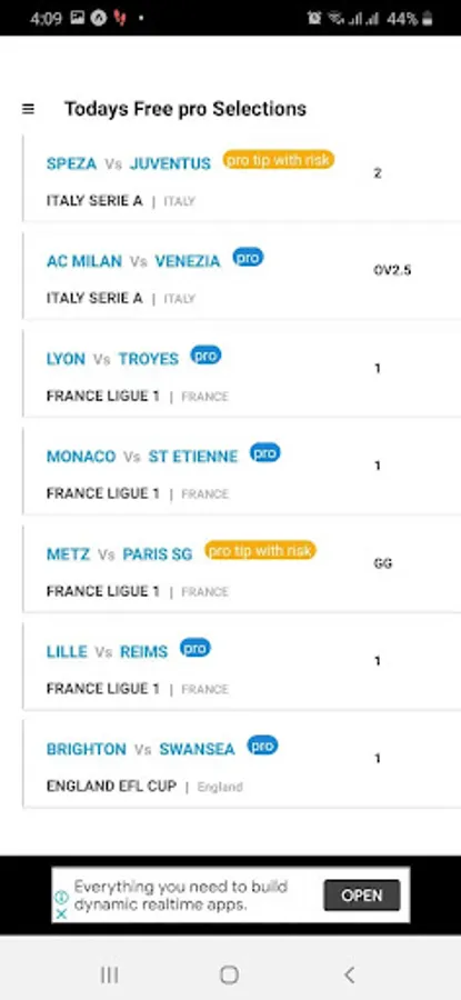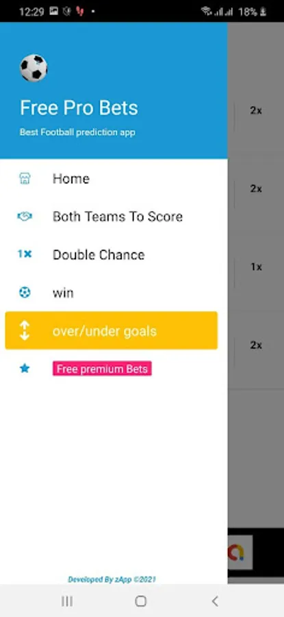 Daily football prediction app for more than 15 + matches .you can choose odds and even lets you select random odds.try it.