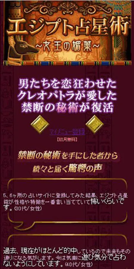 エジプト占星術があなたにクレオパトラのごとき媚薬を授けます。