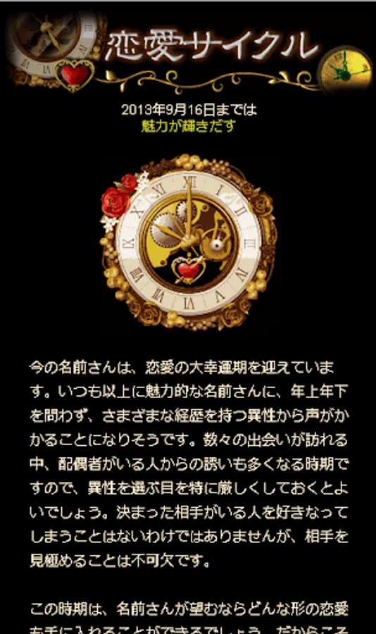 思いがけぬ幸運が舞い降ります。告白される時期などはこの瞬間が多いでしょう