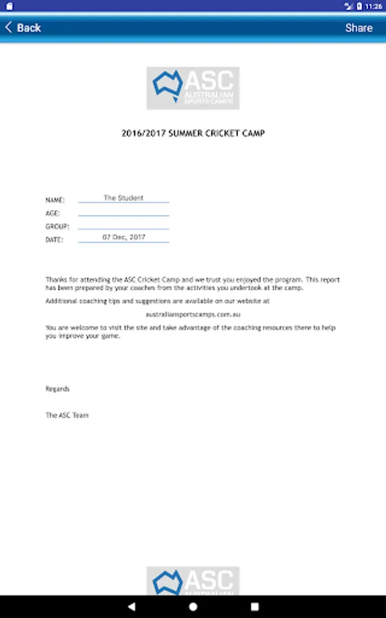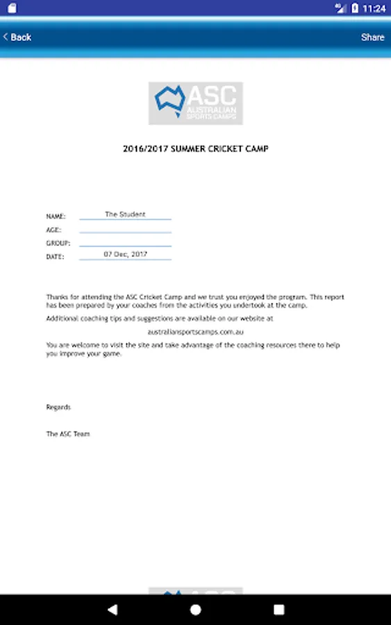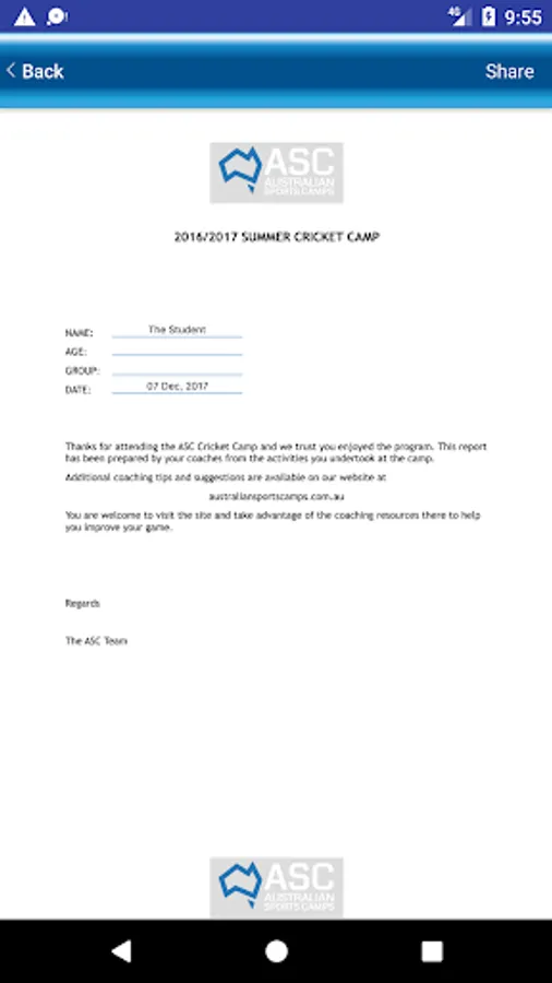 The Australian Sports Camps app provides camp feedback, pictures and reports from your camp. When you register in a camp you will receive login and password details that allows you to have private access to all the feedback sent to you.