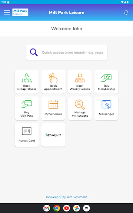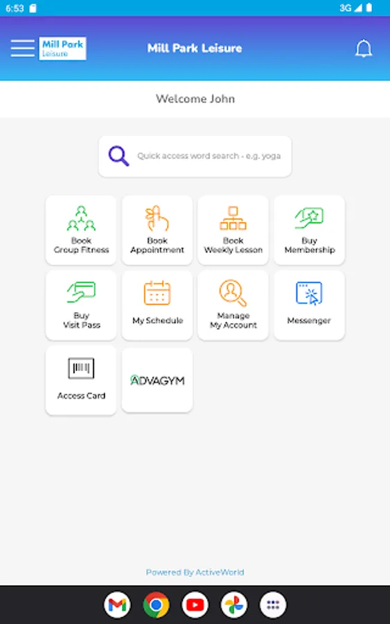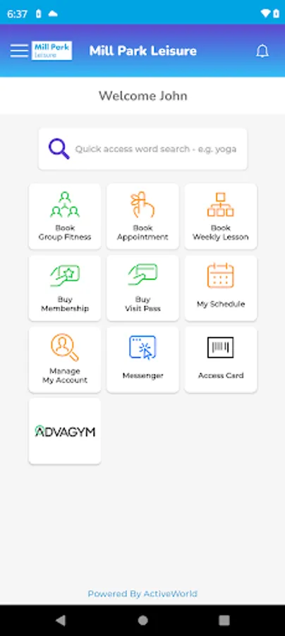 The Active World app is your self managed personal portal and companion app for the Active World Leisure Management solution. Just enter your centre's name or scan its QR code to connect to your centre. Active World allows you to: