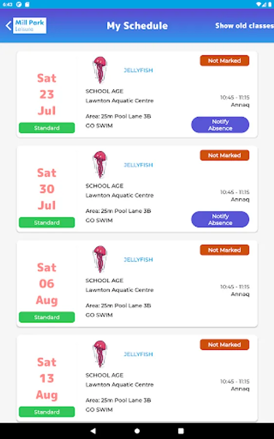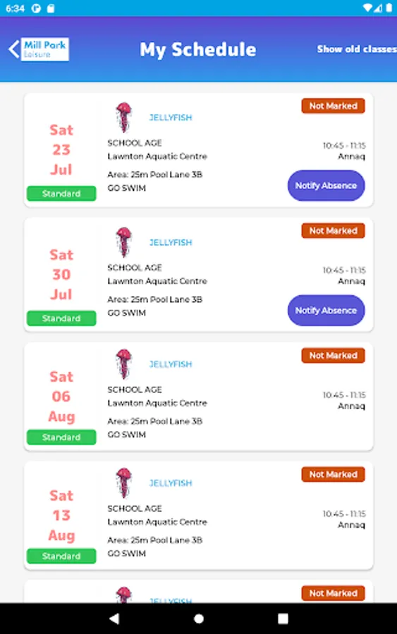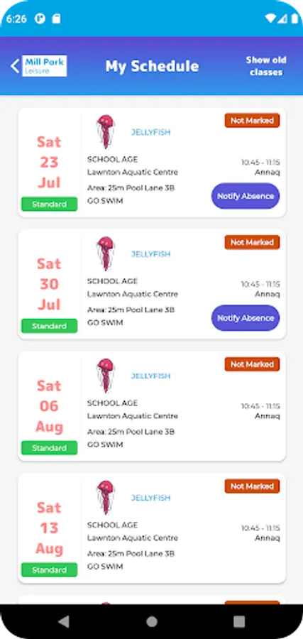 • View upcoming classes