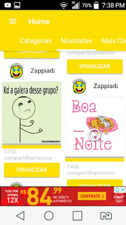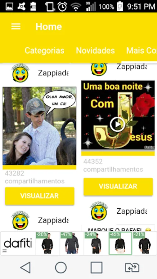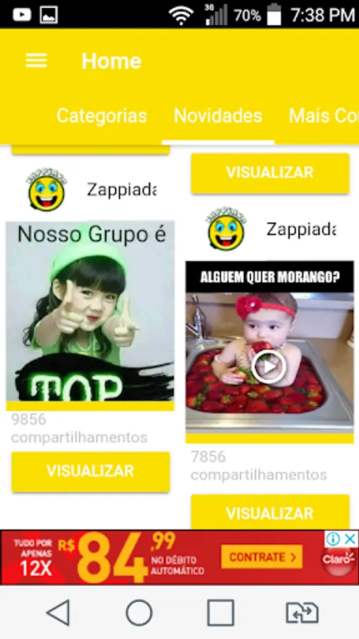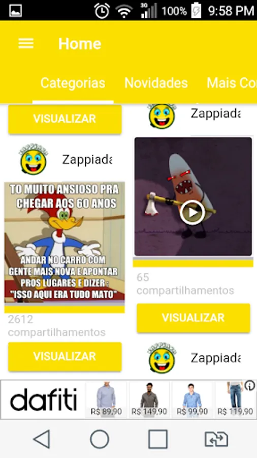 The Zappiada app has several categories, with very funny videos and images that you can watch and share on the app if you need to download the videos.