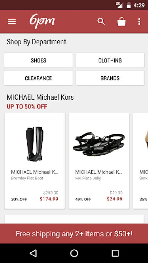 The 6pm.com App puts the top brands and deals you love in your pocket. Shop and browse the latest fashion trends and sales from wherever you are! Score everything from shoes to clothing to handbags and more – all on sale. Plus, get free shipping when you order two or more items or spend over $50!