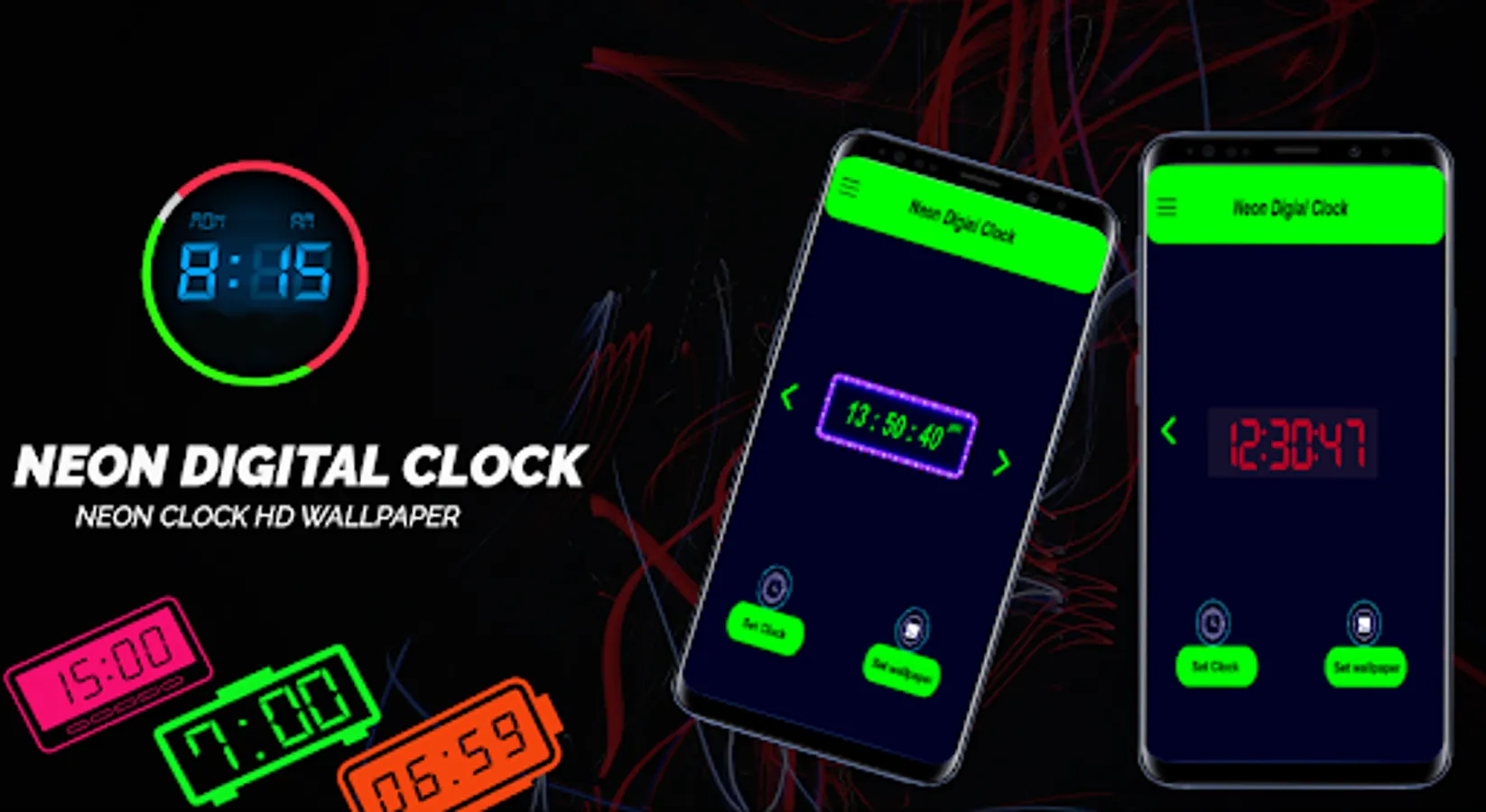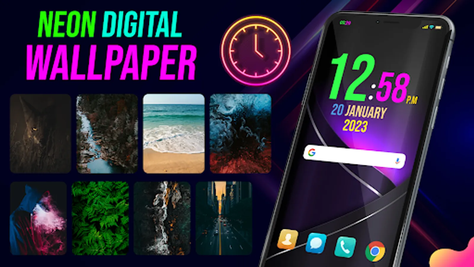 Different attractive stylish neon wallpapers for clock and set as live wallpapers