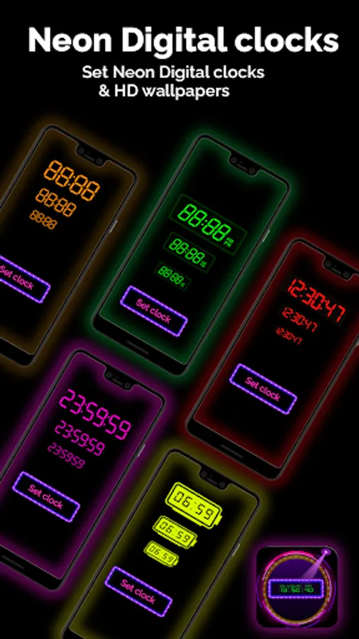 LED Digital Clock and Live Wallpaper with different stylish clock styles: