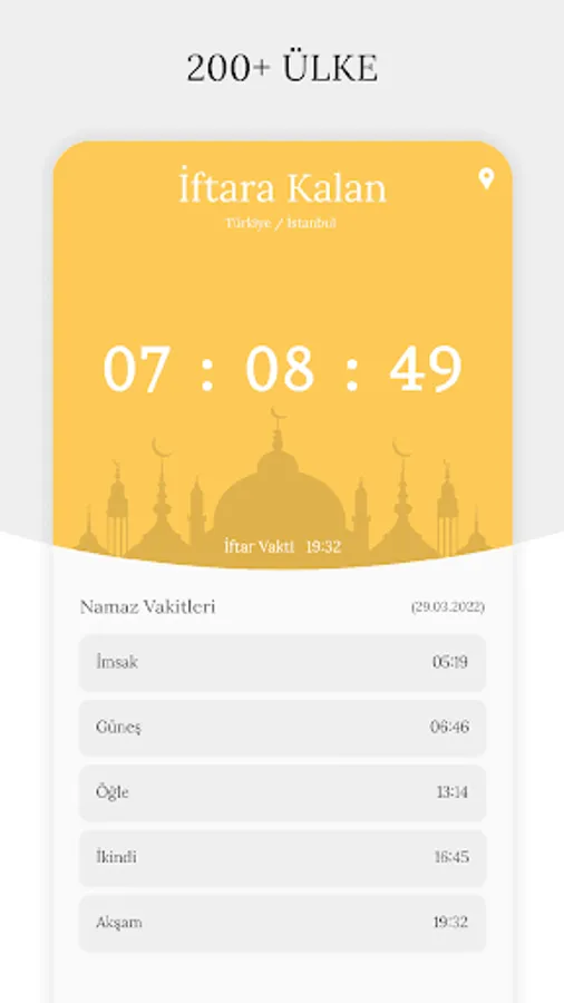 Follow live as a countdown, how much is left for iftar and how much is left for sahur! Thanks to the Iftar Timer application, you can track when you will break your fast in more than 200 countries with the countdown timer and learn the prayer times day by day.