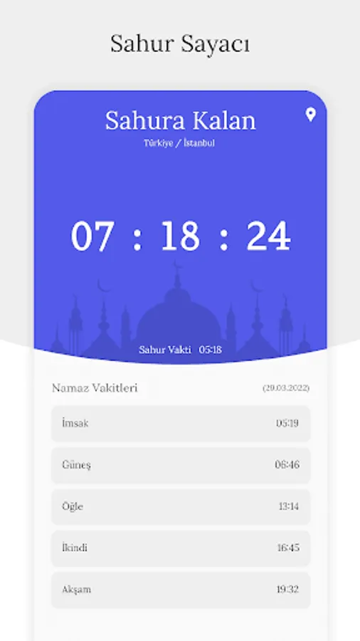 The application will automatically switch between iftar and sahur times according to the location you choose. In this way, you can track both the time left for iftar and the time left for sahur.