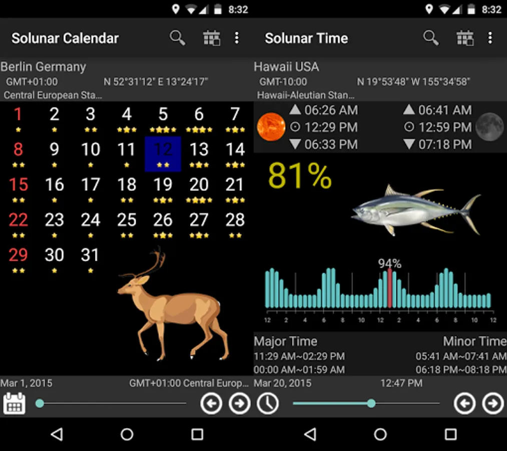 .fishing calendar, fishing time, hunting time, Solunar tables