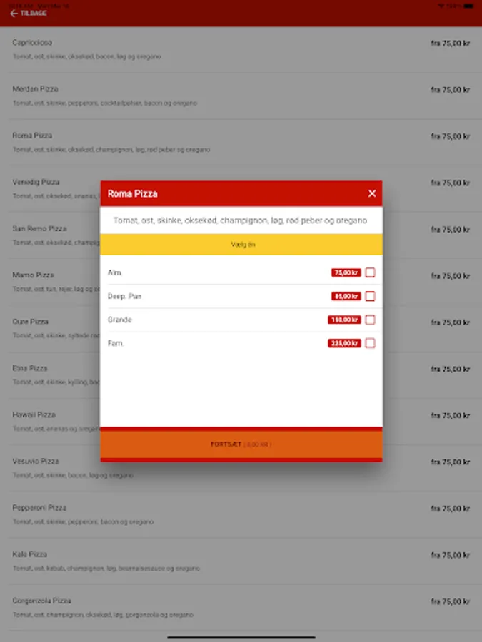Bestil pizza, burger, pasta, m.m. med få tryk, nemt og hurtigt!