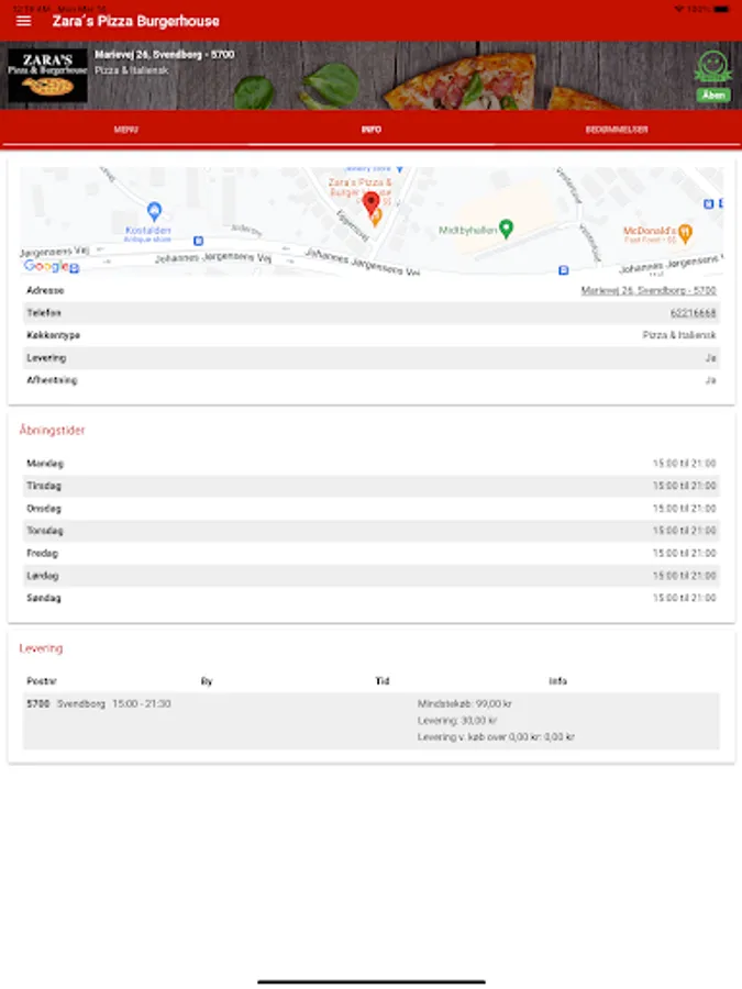 Med Zara´s Pizza Burgerhouse app på telefonen, har du madbestilling lige ved hånden.