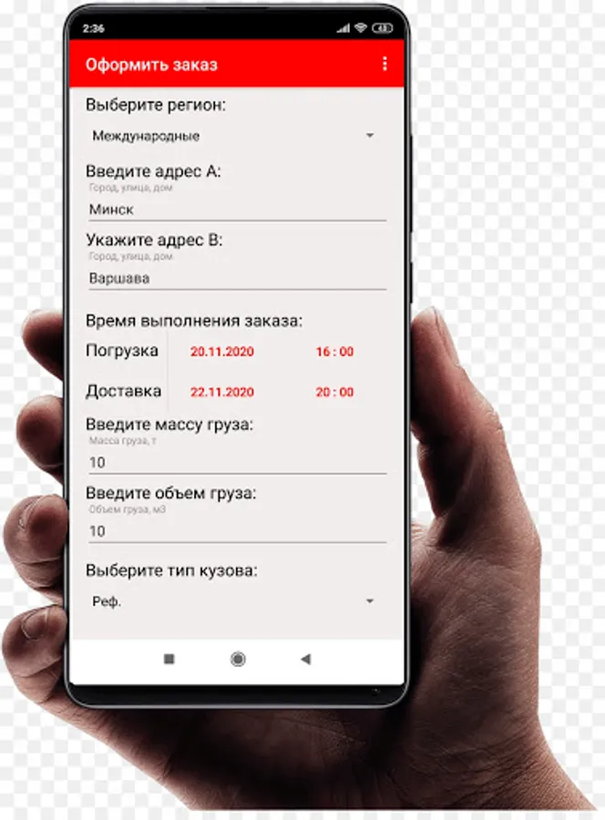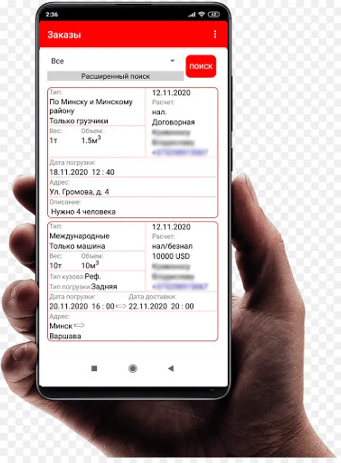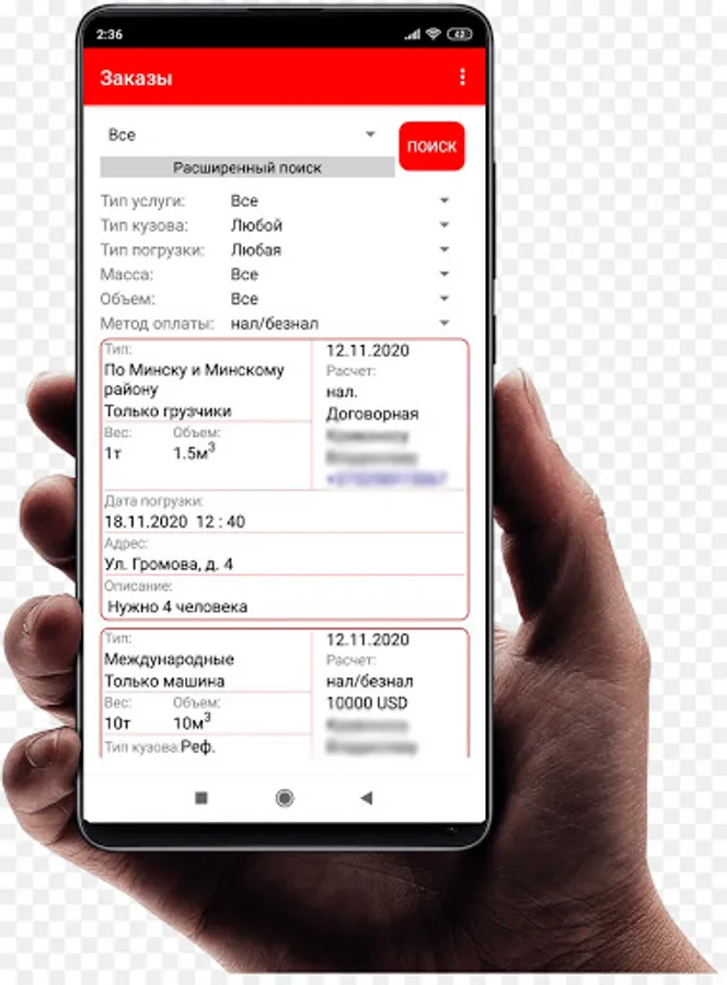 • Place an order of any complexity in the field of work with cargo, from apartment moving to unloading of any volume;