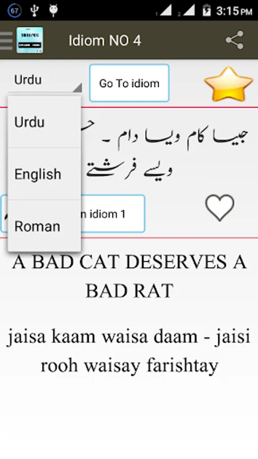 This app contains large number of Idioms, Mahavray and Kahawtein with English,Urdu,Roman Urdu list.