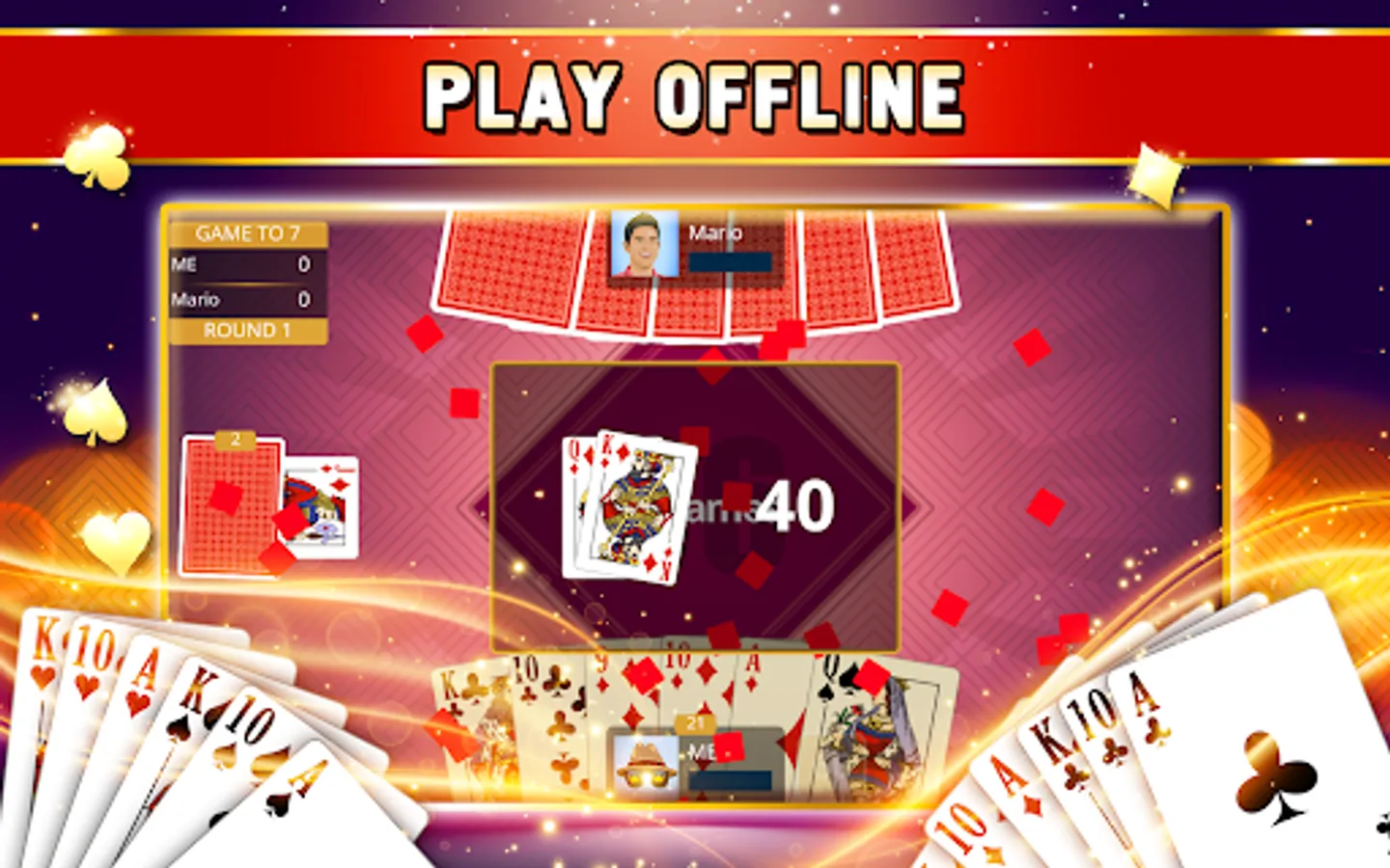 Fight boredom! Improve your strategies and skills as a Sixty-Six Offline player! Prepare to defeat every opponent when the time comes to jump to the next adventure - Sixty-Six Online! Until then spend as much time as you need by testing different tactics in our offline Sixty-Six card game!