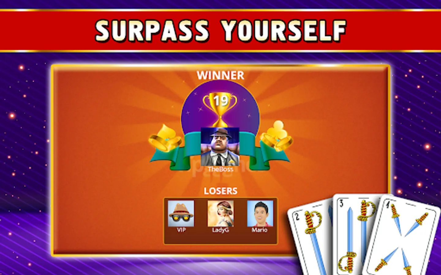 Your full concentration during a game session is our main goal. It is why we created the Chinchón card game available offline! Play, score, and win every round. Earn victories on a daily basis with our single player game app. We want to supply our fans with an uninterrupted Chinchón game, regardless of your internet access.