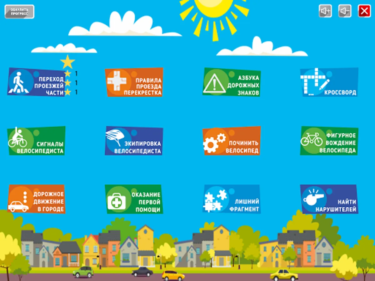 Games "Safe Wheel" on the rules of the road will help you gain theoretical and practical knowledge about the device of the bike and its management in conditions close to real traffic situations, as well as providing first aid. Having experienced everything that a cyclist feels on the road in real life, in the future you can avoid many mistakes.