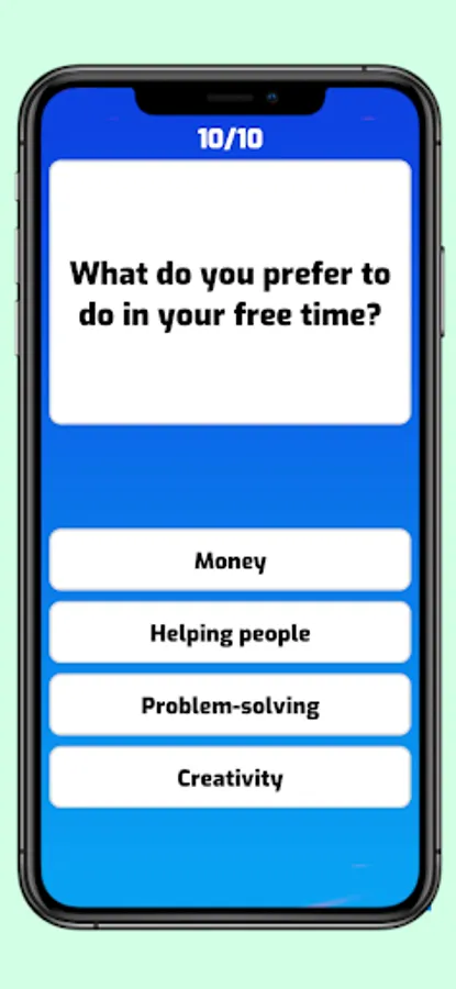 Are you looking for your dream job? Look no further than our app! With our 10-question test on your likes, skills, and interests, you'll quickly discover which profession best suits your passions. Find your ideal job in no time!