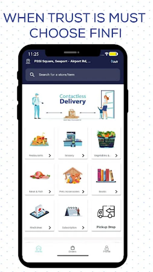 Running any little errand can be quite the task in a booming city like Kochi. The thought of sitting through hours of traffic wasting valuable time just to pick up that bag of milk can be very discouraging. But, fret not. We are here to change your life forever. We give you, Finfi, an app that links you to the nearest delivery agent who can make purchases, send important documents to your associates, or even deliver medicines to your parents living in the other part of the city. Finfi is your one-stop solution to run any errand of your choice! Your wish is our command.