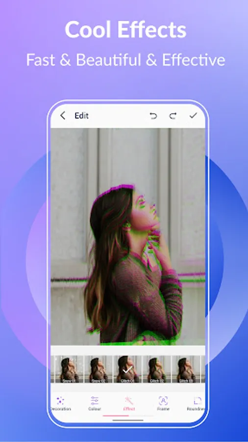 Add some style to your photos with our cool effects and beautiful picture frames. Choose from popular options like 1977, Amaro, Brannan, Early Bird, Hefe, Glitches, VHS, and more.