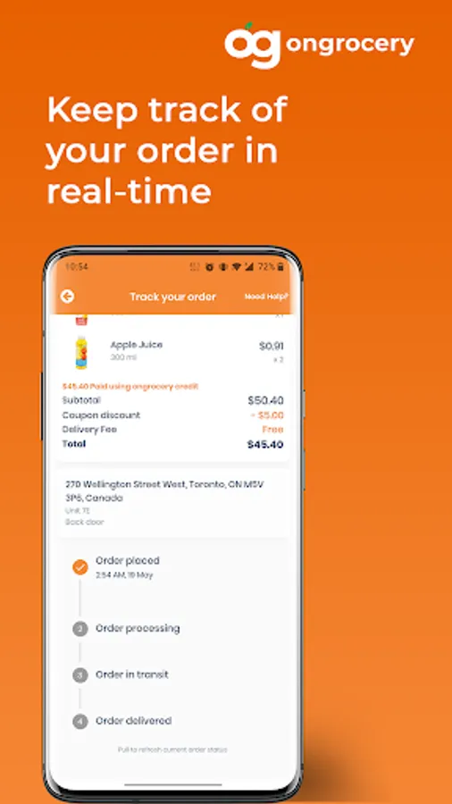 From the moment you place your order, you have the ability to track it from the app and you’ll receive notifications every step of the way. If you have any questions or concerns, please feel free to reach out to us at hello@ongrocery.com The team is very excited to help with any query you might have.