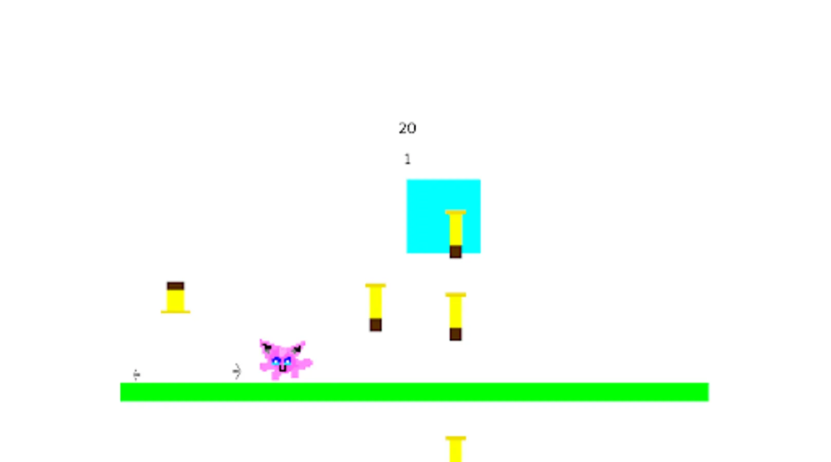 In my game you shoot a bullet at a block and the block disappears and reappears. To shoot you tap the icon of the bullet. To move left or right tap the arrows. The block that you destroy also shoot at you and you have to doge the bullets. You have 25 live and you win when you hit the blocks 150 times.
