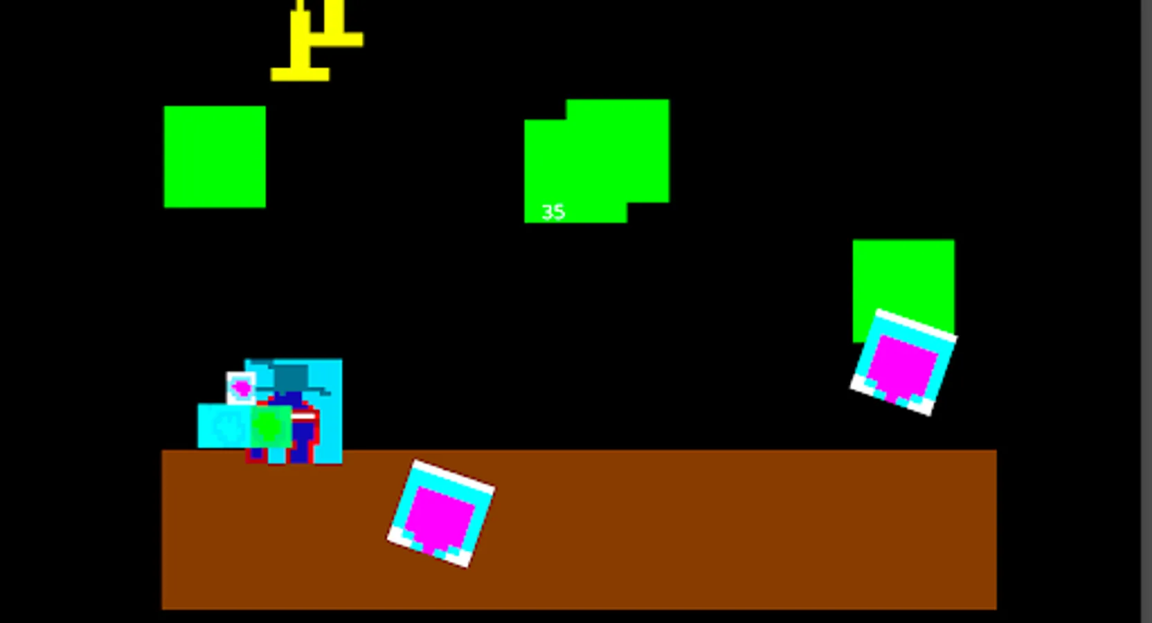 It’s about squares that shoot at you. And they spawn in random spots. And you have to beat 100 squares.