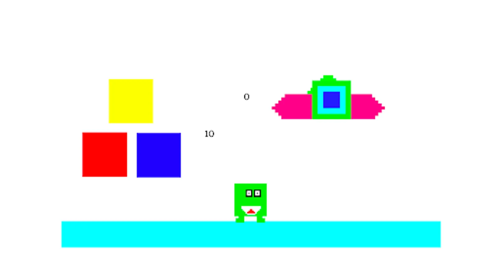In UFO Attack you try to shoot down UFO’s, while they are shooting back at you. You have 10 lives and if a UFO hits you, you lose a life. Also you win if you have 500 points.