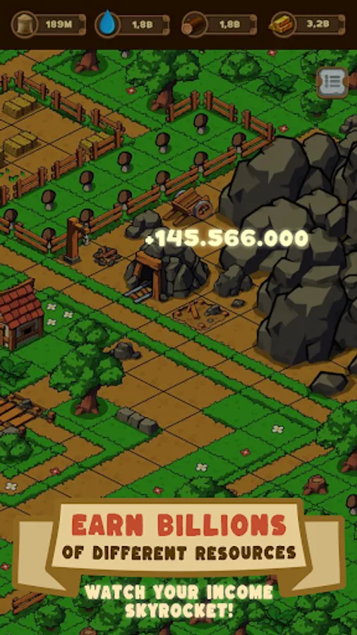 — Unlock new buildings, like sawmill, mine, and city market to keep your town and auto clicker growing.