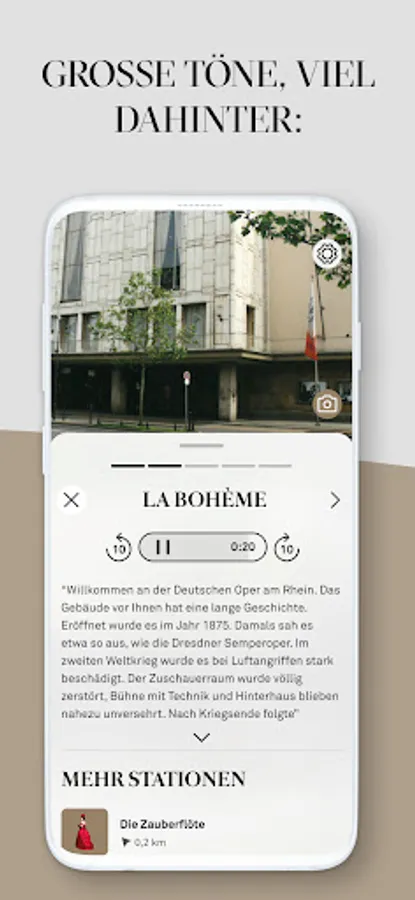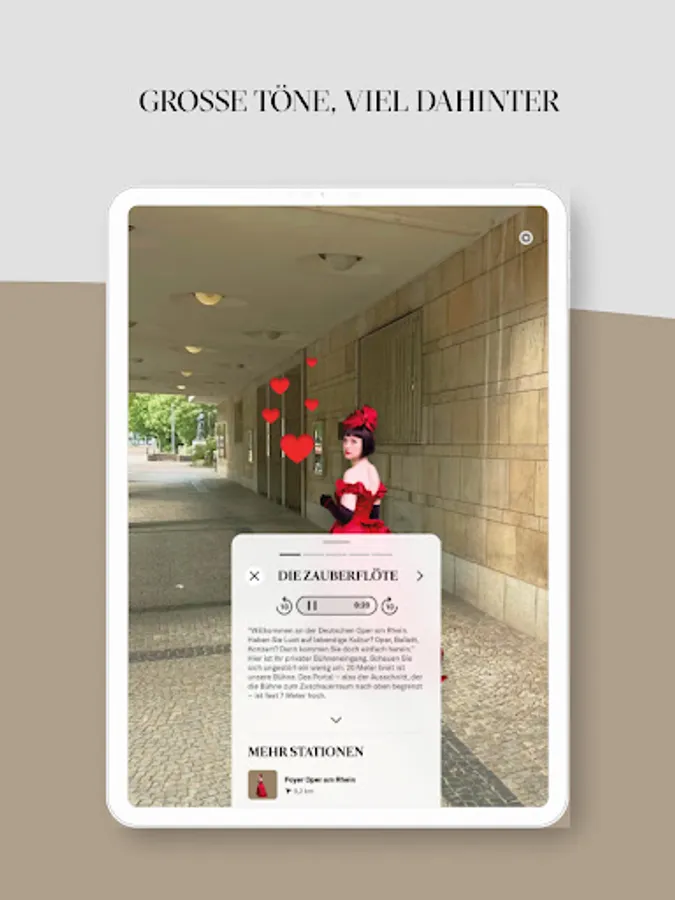 The Deutsche Oper am Rhein provides insights into the opera house and arouses curiosity about dance and music and the content behind the opera house facade. Augmented Reality creates a new approach to art.