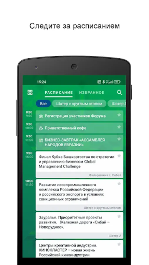 In it, you can view the current program of the event, track and add reminders, communicate and make appointments with participants, access materials, get acquainted with partners and exhibitors, and always have an event map at hand.